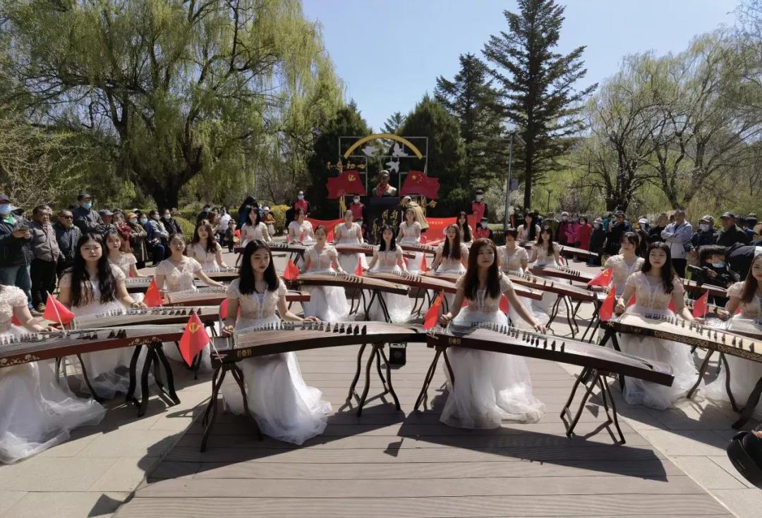 4月14日,bat365官方网站音乐学院古筝团成员及党员志愿者共36人走进鞍山二一九公园,为广大市民进行古筝展演。